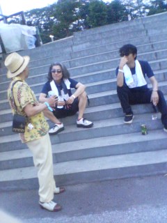 遠くからライヴを眺める二人