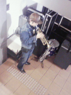 ライダーがトランペットを吹き